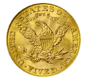 - Designed by the U.S. Mint’s chief engraver Christian Gobrecht in 1839, the $5 Liberty Gold Half Eagle has become one of the most highly sought after coins on the market today. Each Liberty Gold Half Eagle was minted employing 90.0% gold for a total of .24187 troy ounces. These stunning treasures were minted from 1839 to 1908. Liberty Head $5 half eagles are a historic example of the high quality output of the U.S. Mint over its illustrious history.